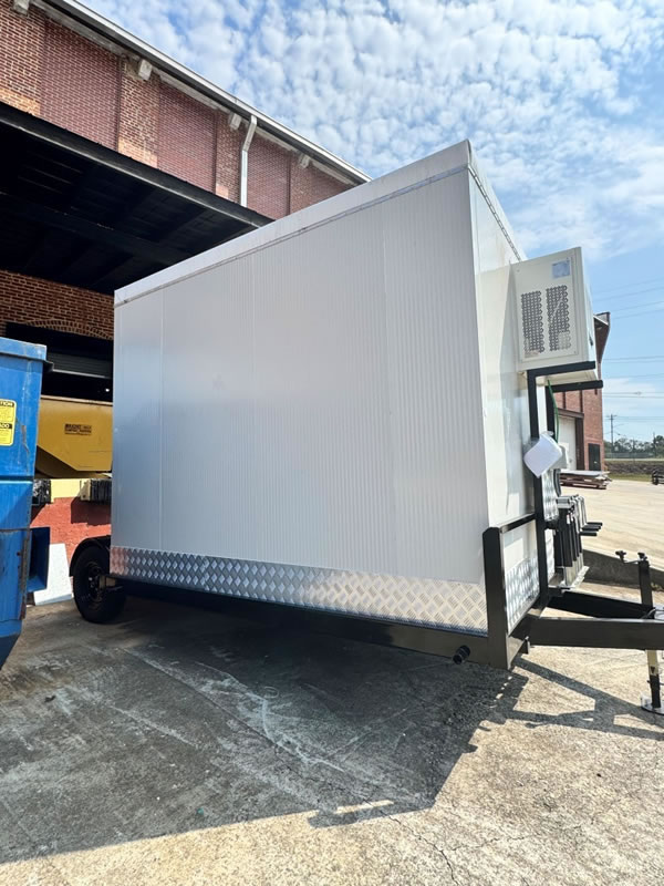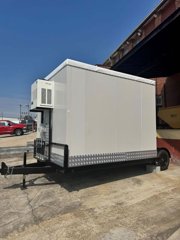 (2) Special Mobile Trailer Mounted Walkin Cooler/Freezers, Custom Built, Brand New! Completely Self Contained Plug and Go!